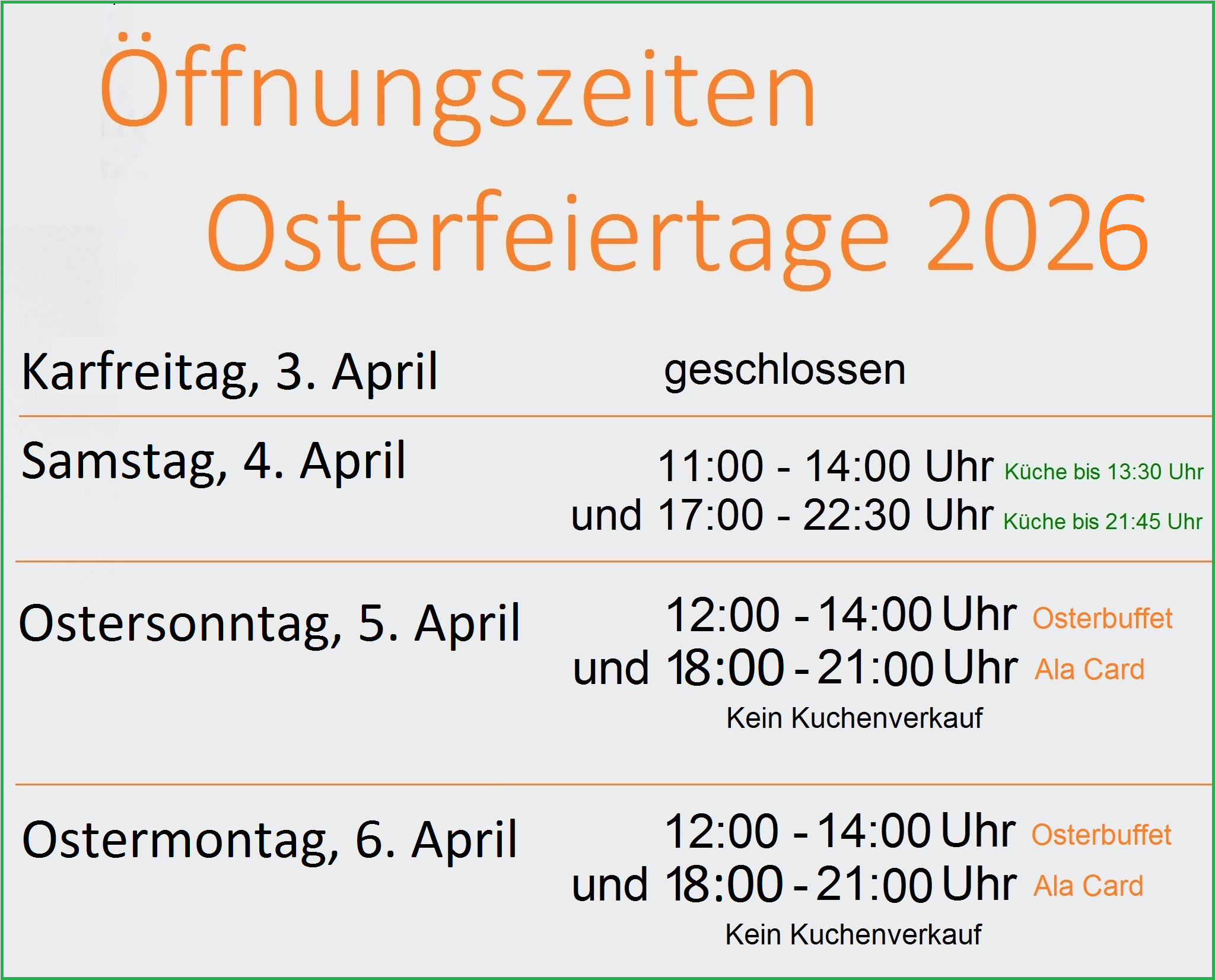 06.04.2026 11:30 Uhr: Osterbuffet I Ostermontag