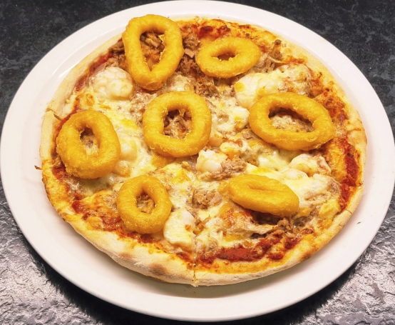 Thunfisch, Zwiebeln, Champignons, Oliven und Artischocken [3,6]