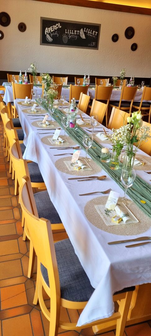 In unseren Nebenräumen haben bis zu 50 Personen Platz, um ausgiebig zu feiern. Auch mit Gesellschaften bis 100 Personen können Sie unsere Gaststätte oder die Sonnenterrasse (Terrasse beschattet bis 50 Personen) buchen.